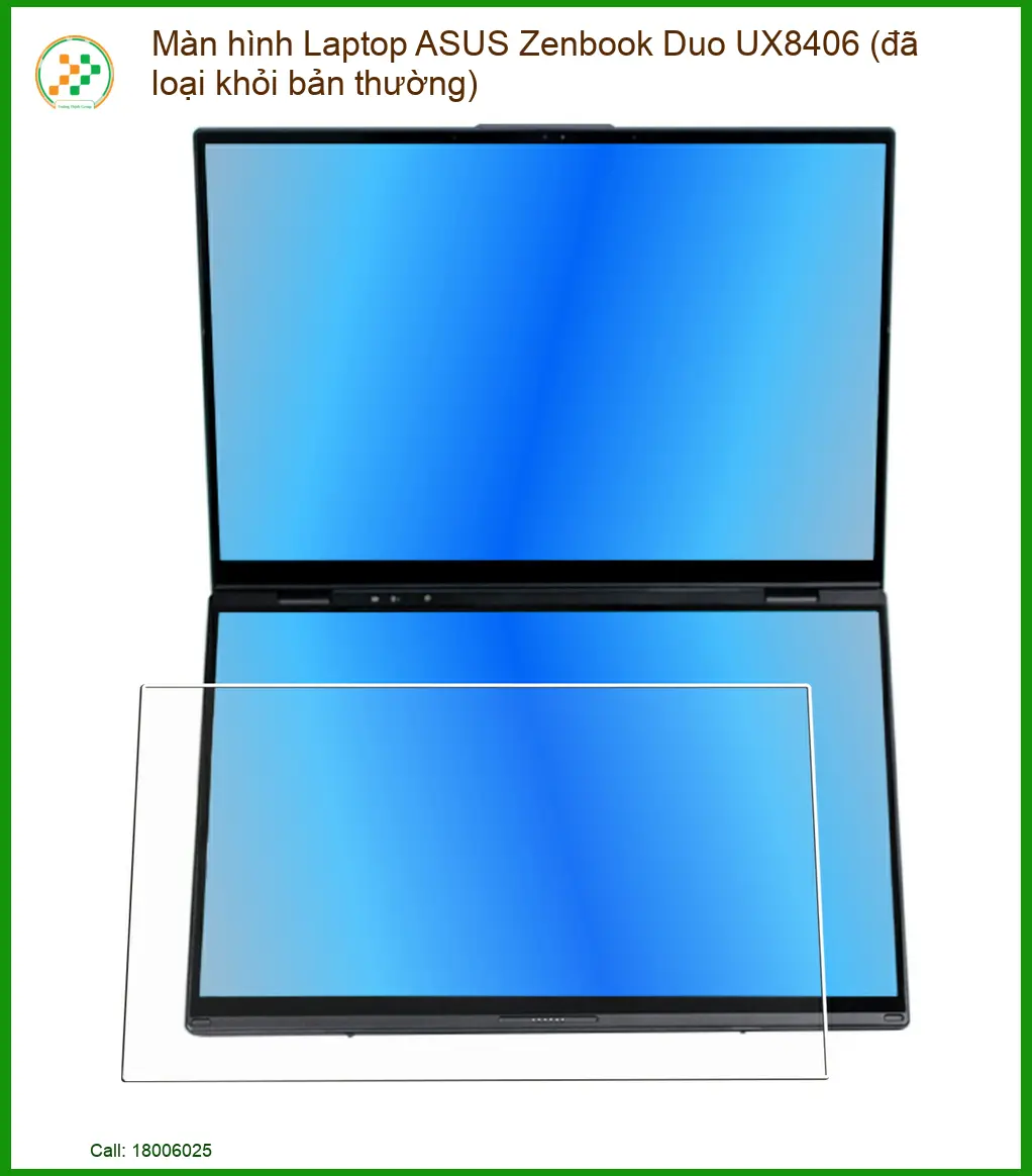 Bạn đang sở hữu siêu phẩm công nghệ và gặp sự cố với Màn hình Laptop ASUS Zenbook Duo UX8406 (đã loại khỏi bản thường)? Đừng để những đường sọc hay vệt đen làm gián đoạn trải nghiệm sáng tạo của bạn. Tại Trường Thịnh, chúng tôi cung cấp dịch vụ thay thế màn hình chính hãng, khôi phục hoàn hảo vẻ đẹp nguyên bản cho thiết bị đẳng cấp này.