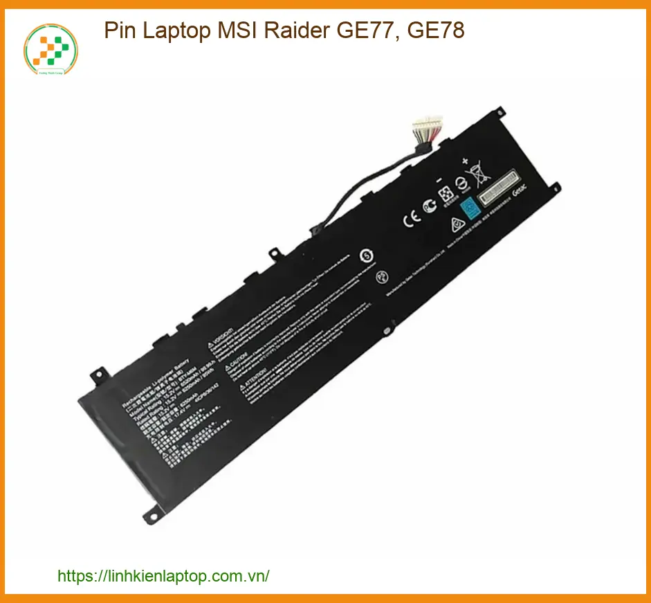 Pin laptop MSI Raider GE77, GE78 dung lượng chuẩn, tuổi thọ cao, tương thích 100% với máy. Dịch vụ thay thế chuyên nghiệp, cam kết hàng chính hãng, bảo hành dài hạn.